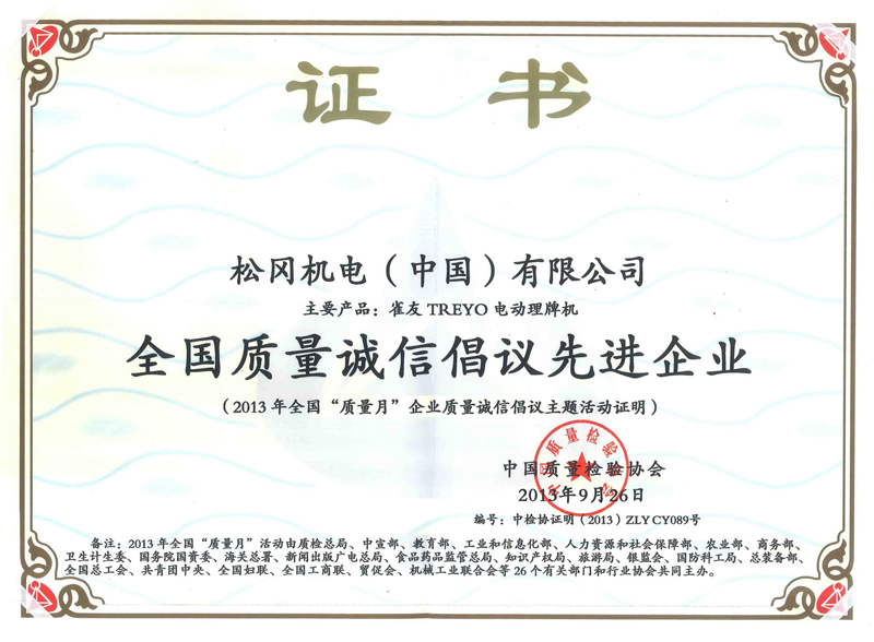 全国质量诚信倡议先进企业